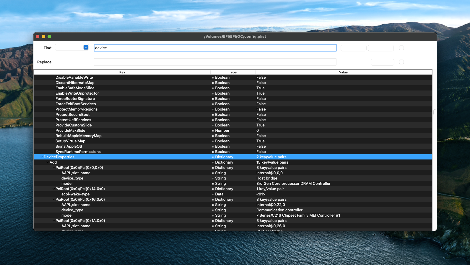 Misc -> DebugAppleDebug = FalseApplePanic = FalseDisableWatchDog = TrueTarget = 0