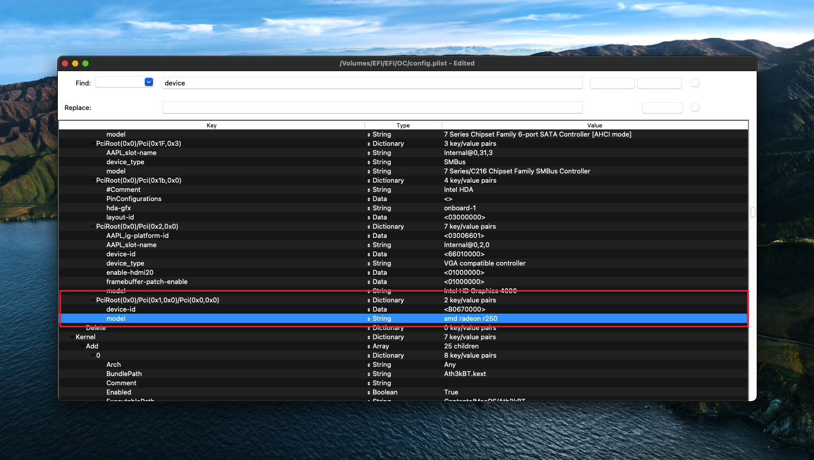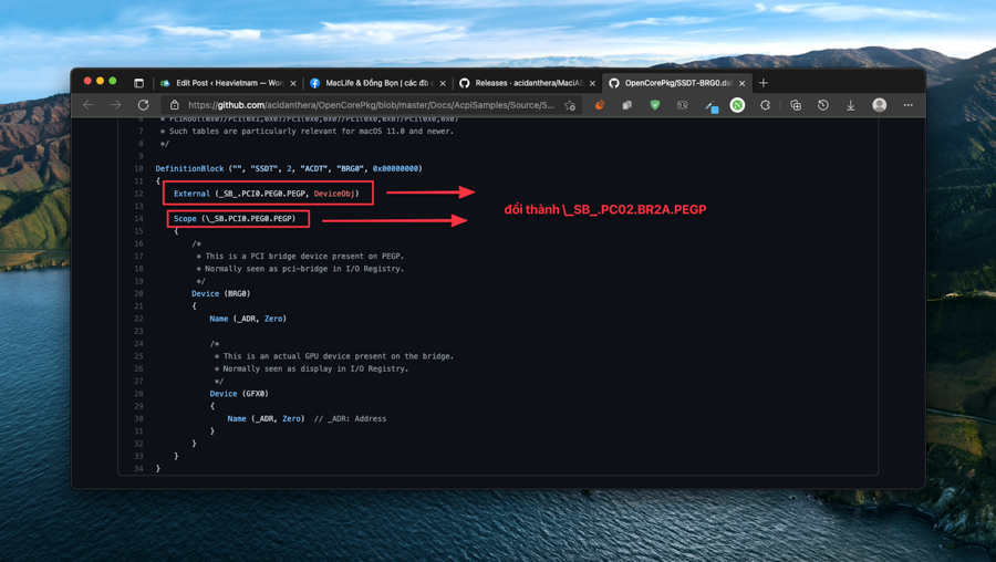 Đối với Big Sur: đối với 1 số máy sẽ gặp bug DeviceProperties injection failing để kiểm tra các bạn sẽ dùng IOReg vào đường dẫn của VGA rời tìm mục ACPI-Patch.