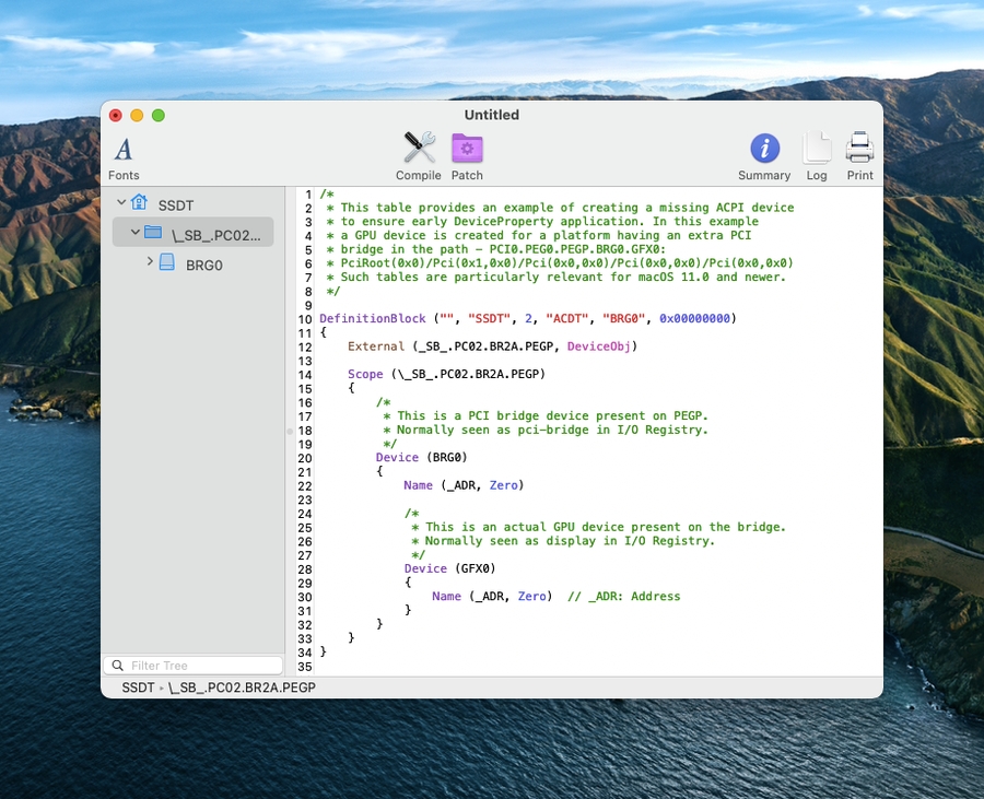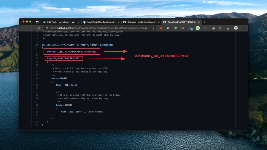(thay thế pci0 ⇒ pc02, peg0 ⇒ br2a)B4: Thay thế vào SSDT nó sẽ có dạng: