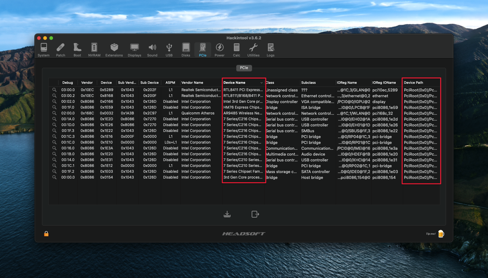 B1: Mở Hackintool lên và chọn Tab PCle.