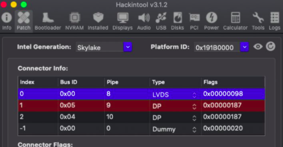 B1: Mở Hackintool chuyển tới tab Patch ⇒ Connect