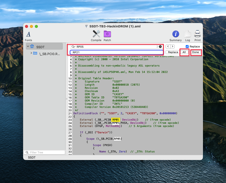 Ta có thể thấy đường dẫn dẫn tới thunderbolt sẽ là PCI0.RP21.PXSX