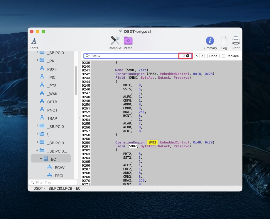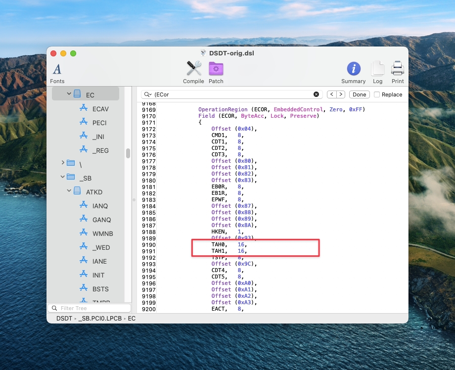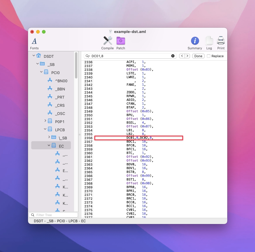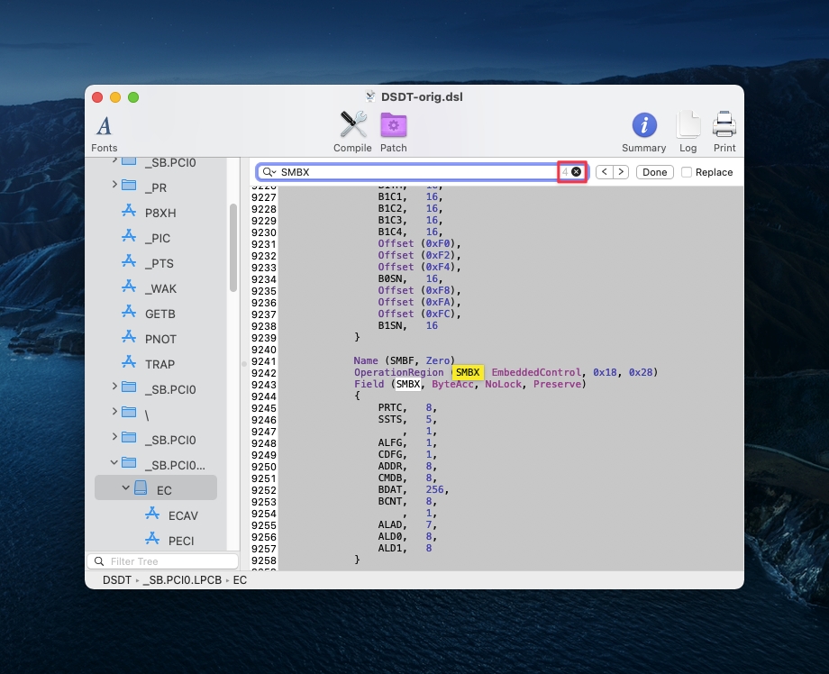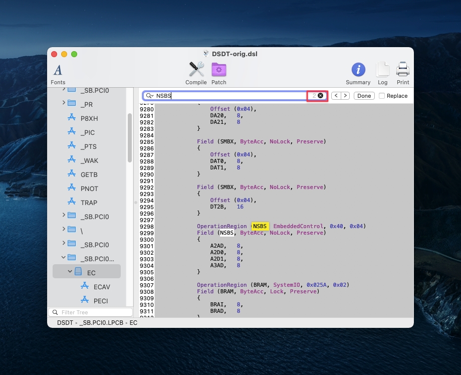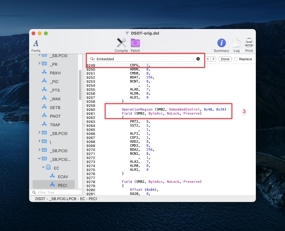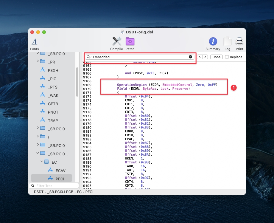 B3: Mở DSDT lên và search Embedded để xác định các trường EC.